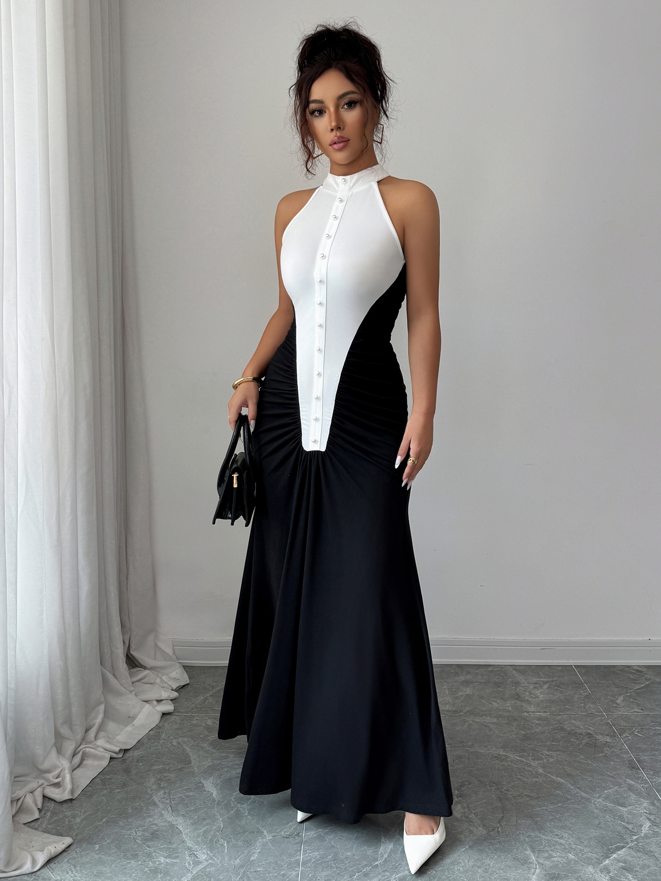 Elegant And Fashionable Color-block Sheath Dress
