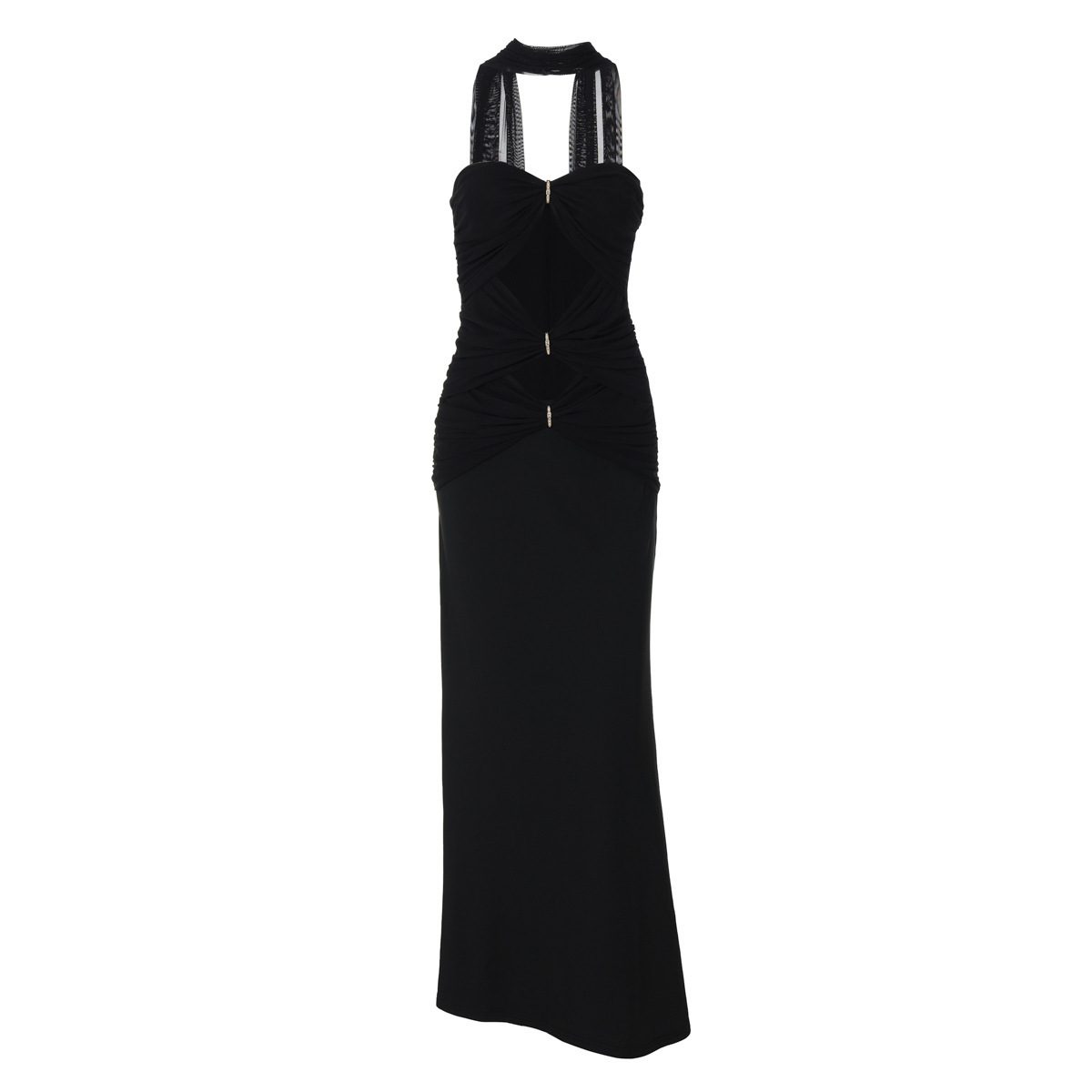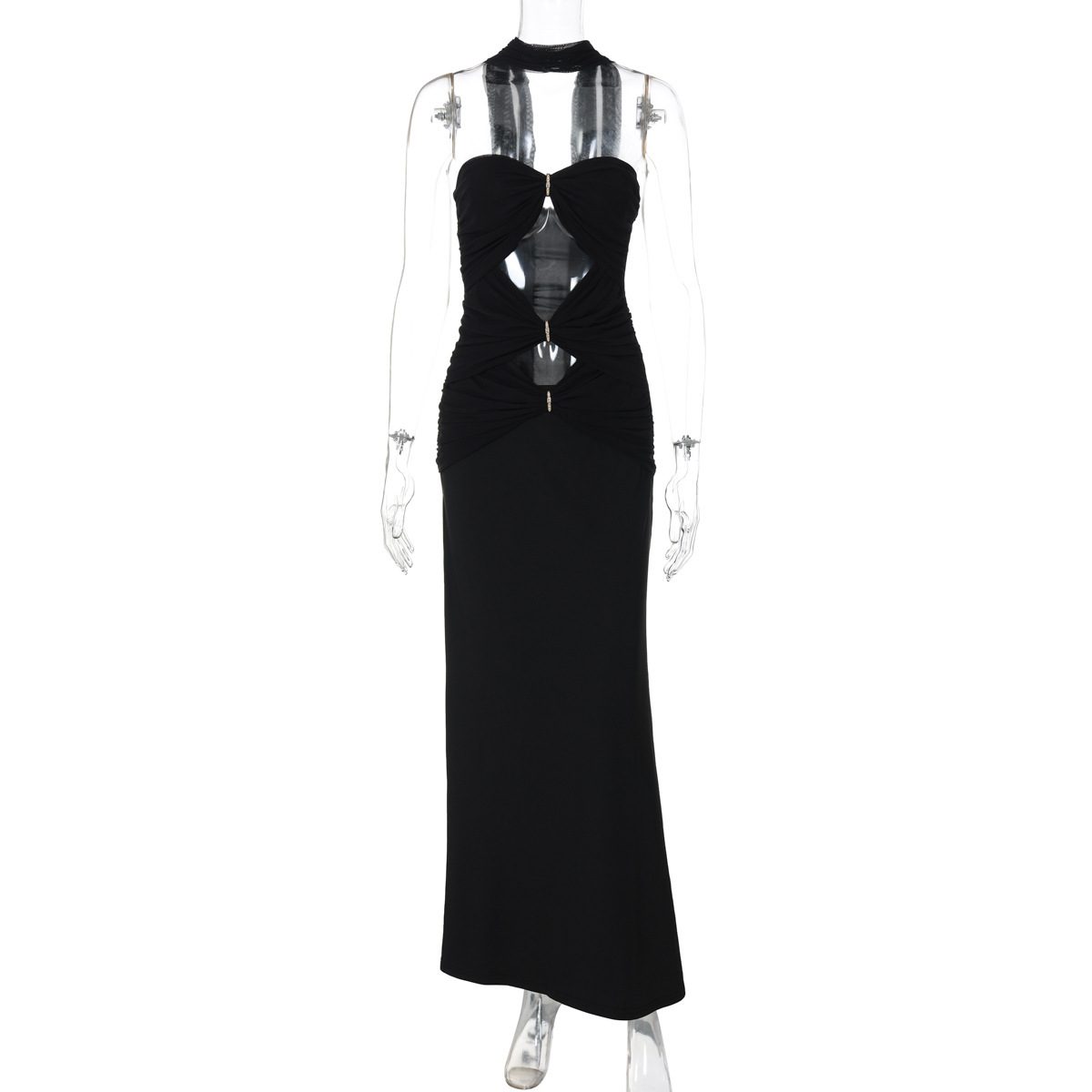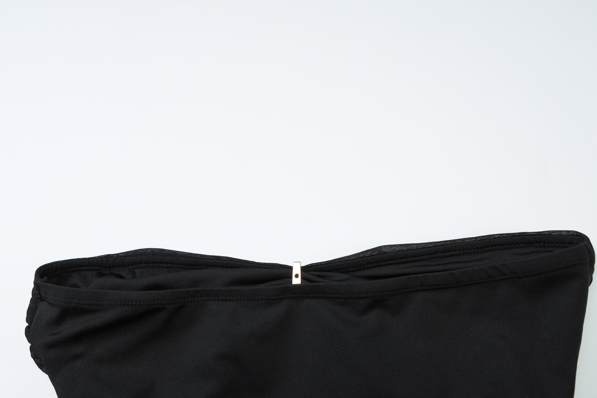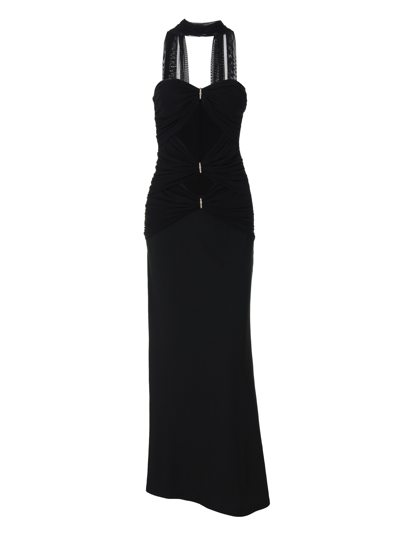 Craft details: Hollow-out, rhinestone embellishments, fishtail hem