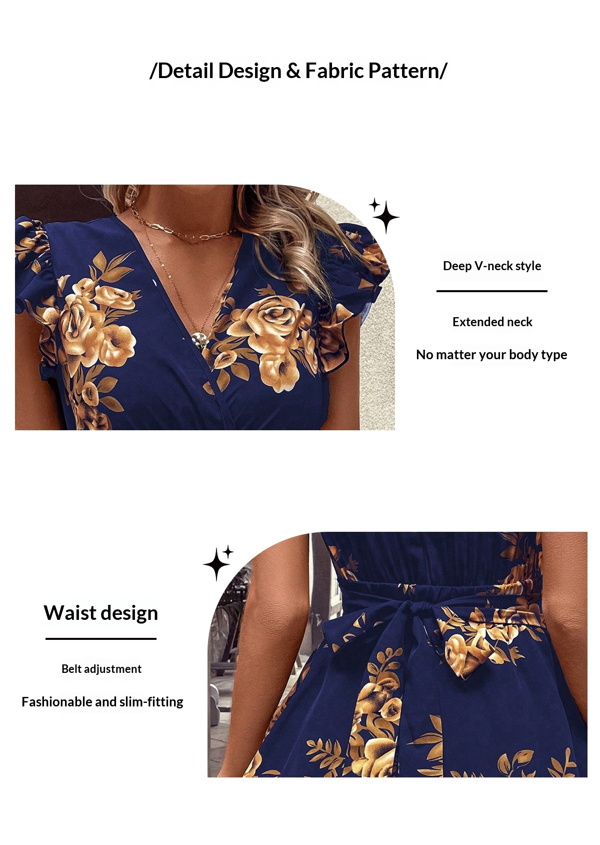 Color: Black floral print, royal blue floral print